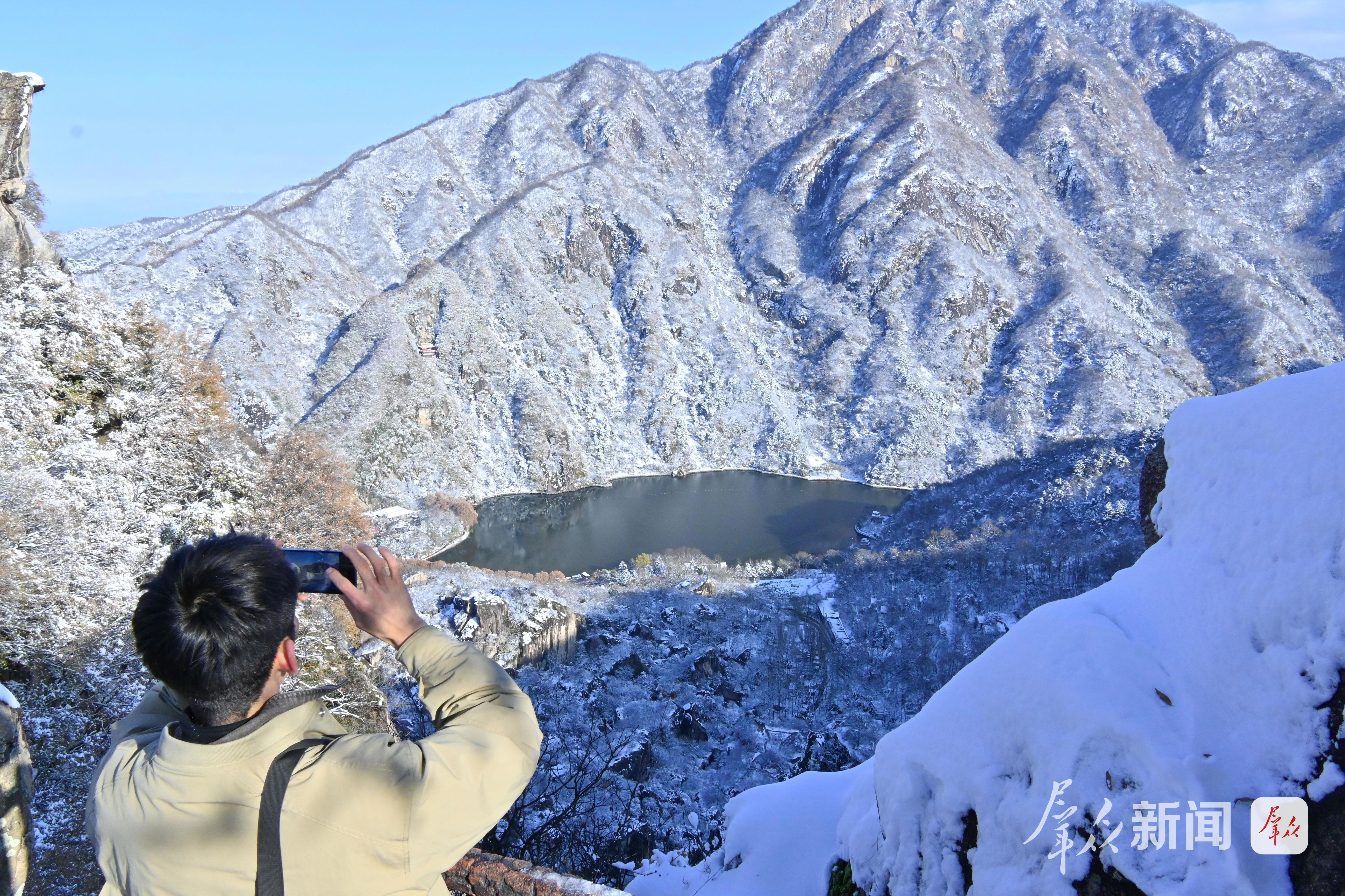 秦嶺迎來(lái)初冬第一場(chǎng)雪。11月17日,西安翠華山景區(qū)內(nèi),游人漫步于銀裝素裹的靜謐山間,宛若置身一幅徐徐展開的水墨畫卷,盡顯中式美學(xué)意境。(群眾新聞?dòng)浾?杜瑋)
