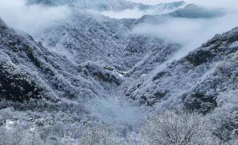 2月23日,農(nóng)歷正月初七,突如其來的大雪,讓西安翠華山瞬間化作一幅水墨長卷。漫天飛雪為這座秦嶺名山披上圣潔銀裝,山巔云霧繚繞,瓊枝玉樹,勾勒出一幅“終南陰嶺秀,積雪浮云端”的詩意畫卷。